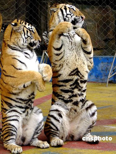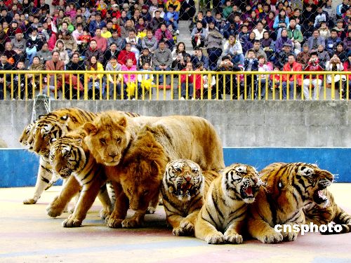 圖:廣西南寧老虎獅子為游人作揖拜年(2)
