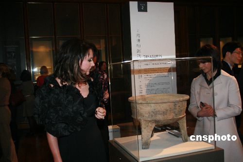 圖為布萊曼(左)在開幕式后參觀在大英博物館舉辦的“中國青銅玉器展”。