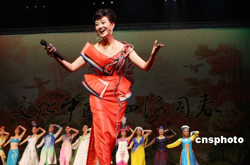 圖為著名歌唱家宋祖英在晚會上獻(xiàn)唱。中新社發(fā) 魏晞 攝