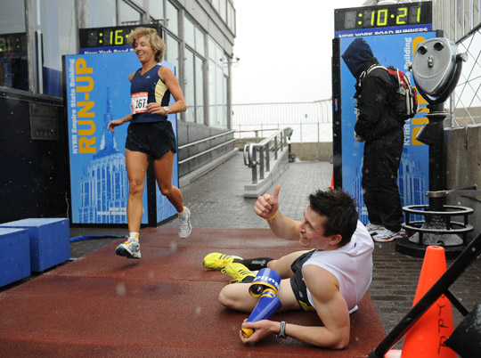 爬樓大賽:美國紐約舉辦的一場爬樓大賽,參賽選手們終點(diǎn)是奔向位于帝國大廈頂樓的觀景臺。這項(xiàng)挑戰(zhàn)體力與毅力的比賽已經(jīng)舉辦了32屆,參賽者們要爬上86層樓,共要邁過1576級臺階。