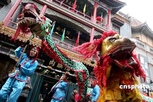 2月8日,首屆傳統(tǒng)元宵燈會(huì)在北京大柵欄商業(yè)街舉辦,這也是大柵欄恢復(fù)傳統(tǒng)元宵燈會(huì)的第一年。 “正月十五鬧花燈”自100多年前就是前門大柵欄的傳統(tǒng)民俗,元宵燈會(huì)上布置數(shù)十款樣式各異的花燈供游人欣賞,還特別邀請(qǐng)了民俗藝術(shù)家們?yōu)榍皝?lái)賞燈的游客獻(xiàn)上極具老北京民俗特色的精彩表演,以最大程度地展現(xiàn)老北京元宵燈會(huì)的場(chǎng)面。