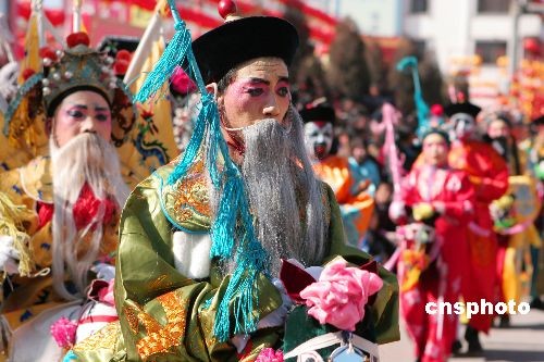 2月9日,山西陽城縣街頭,鼓聲陣陣,嗩吶聲聲,龍舞獅躍,人頭攢動。社火耍紅了天,百姓笑開了顏,好一個紅火熱鬧的元宵節(jié)。