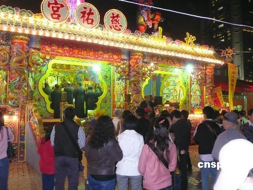 臺北元宵燈會開場,松山慈佑宮設立的燈區(qū)吸引了大量民眾前來上香,為新年祈禱。中新社發(fā) 路梅 攝