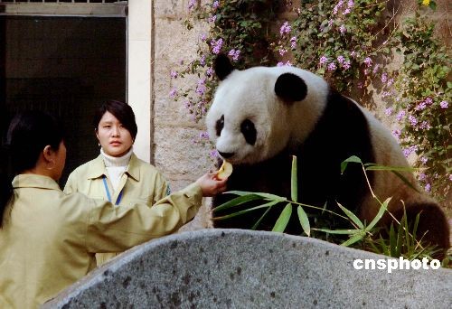 2月11日,生活在福州熊貓世界的28歲(相當(dāng)于人類的100多歲)大熊貓明星巴斯在接受臺(tái)灣電視臺(tái)攝制組拍攝間隙,盡享明媚春光。當(dāng)日,臺(tái)灣電視臺(tái)攝制組一行7人專程來(lái)到福州熊貓世界,拍攝生活在這里的大熊貓。中新社發(fā) 劉可耕 攝