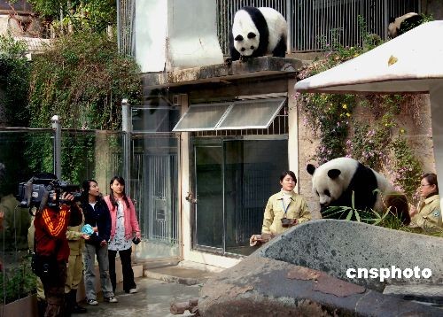 2月11日,臺(tái)灣電視臺(tái)攝制組一行7人專程來到福州熊貓世界,拍攝生活在這里的大熊貓。中新社發(fā) 劉可耕 攝