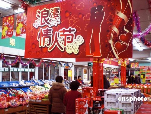 2月11日,情人節(jié)臨近,天津商場(chǎng)節(jié)日氣氛漸濃,各大商家也開(kāi)始精心布置門面,迎接“情人節(jié)”購(gòu)物季的到來(lái),一場(chǎng)“情人節(jié)”商戰(zhàn)正在悄然打響。中新社發(fā) 金立冬 攝