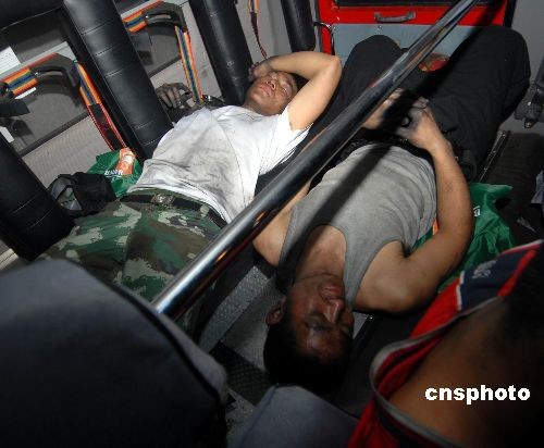 圖為13日凌晨3點(diǎn)多,疲倦的滅火消防官兵得以在消防車倉(cāng)內(nèi)休息片刻。中新社發(fā) 穆長(zhǎng)梓 攝