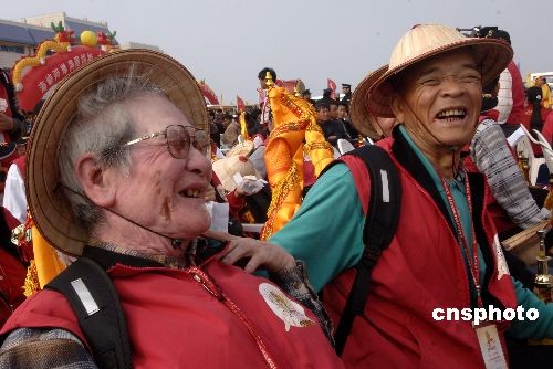 圖:臺(tái)灣媽祖信眾湄洲島樂開懷