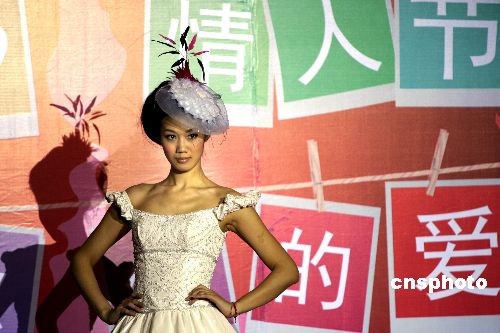 2月13日,情人節(jié)前夕,各商家紛紛想出辦法緊抓商機。某商家在商場內為情人們奉獻上一場婚紗展,此展覽將持續(xù)三天,模特每天將分時段在商場T臺上為顧客展示多樣婚紗。中新社發(fā) 富田 攝