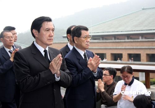2月15日,臺灣法鼓山創(chuàng)辦人圣嚴(yán)法師追思法會暨植存在法鼓山舉行。參加追思法會暨植存的臺灣地區(qū)領(lǐng)導(dǎo)人馬英九、蕭萬長隨眾僧和信眾送圣嚴(yán)法師舍利函前往植存區(qū)。中新社發(fā) 陳立宇 攝