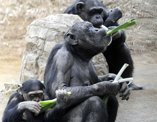 趣圖:動(dòng)物園里黑猩猩吃大蔥預(yù)防感冒(2)