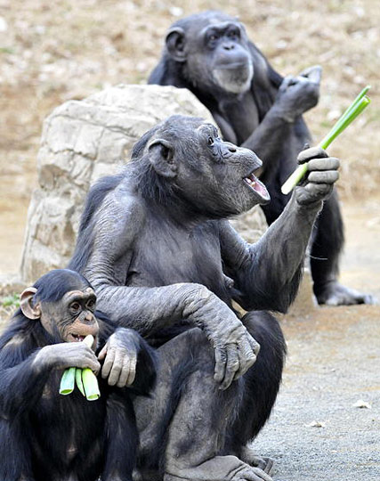 趣圖:動物園里黑猩猩吃大蔥預防感冒(3)