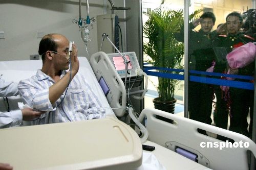 圖:央視新址大火救火英雄康復(fù)出院(2)