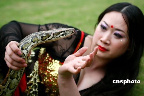 組圖:芙蓉姐姐與蟒蛇共舞拍攝寫真(4)