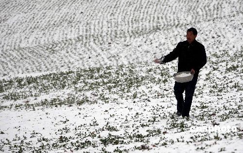 農(nóng)民冒雪施肥