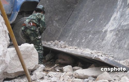 圖為消防員在一輛被砸爛的大貨車(chē)下發(fā)現(xiàn)最后一名被困人員的遺體。
