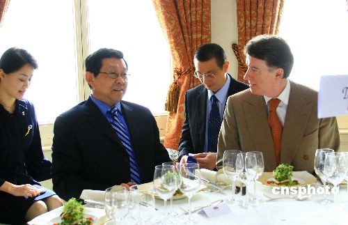 圖:陳德銘與英商業(yè)大臣曼德爾森共進午餐