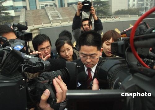 3月4日,三鹿集團部分破產資產在河北石家莊市中級法院公開拍賣。石家莊中級法院新聞發(fā)言人王偉向媒體宣布,三元集團與三元股份全資子公司河北三元以6.165億元人民幣拍得三鹿資產。圖為新聞發(fā)布現(xiàn)場。中新社發(fā) 翟羽佳 攝
