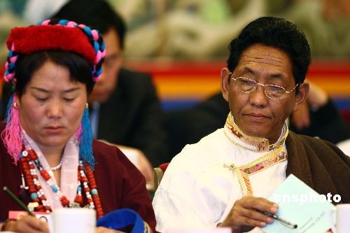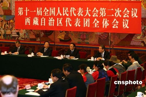 3月6日,十一屆全國(guó)人大二次會(huì)議西藏自治區(qū)代表團(tuán)在人民大會(huì)堂舉行全體會(huì)議,吸引眾多中外媒體的記者。會(huì)后,西藏自治區(qū)人大常委會(huì)主任列確、西藏自治區(qū)主席向巴平措等接受了中外媒體的采訪。中新社發(fā) 杜洋 攝