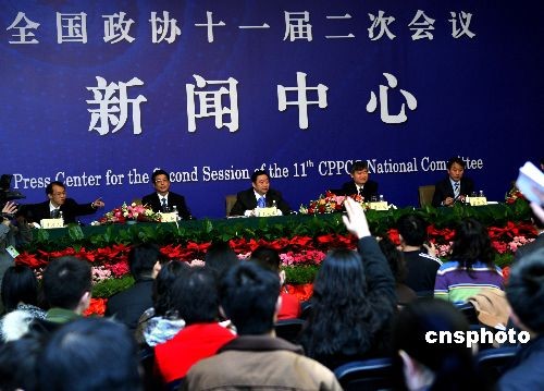 3月7日上午,全國政協(xié)十一屆二次會(huì)議就“大學(xué)生就業(yè)問題”舉行記者會(huì),全國政協(xié)委員王超斌、張亞忠、蔡繼明、宗立成、金正新回答記者提問。他們普遍認(rèn)為,在國家出臺(tái)具體的政策扶持大學(xué)就業(yè)的同時(shí),大學(xué)生自身改變就業(yè)觀念也很重要,從正面看“大學(xué)生賣豬肉”現(xiàn)象具有積極意義。中新社發(fā) 宋吉河 攝