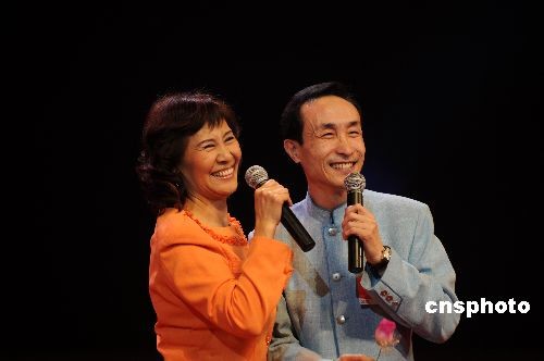 全國政協(xié)委員、著名小品演員鞏漢林夫婦表演小品。中新社發(fā) 宋健浩 攝
