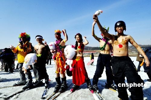 3月7日,沈陽市白清寨滑雪場舉行天體滑雪節(jié),活動(dòng)分為特色服裝、創(chuàng)意滑雪等項(xiàng)目,全市20位市民報(bào)名參加,挑戰(zhàn)嚴(yán)寒。中新社發(fā) 文契 攝