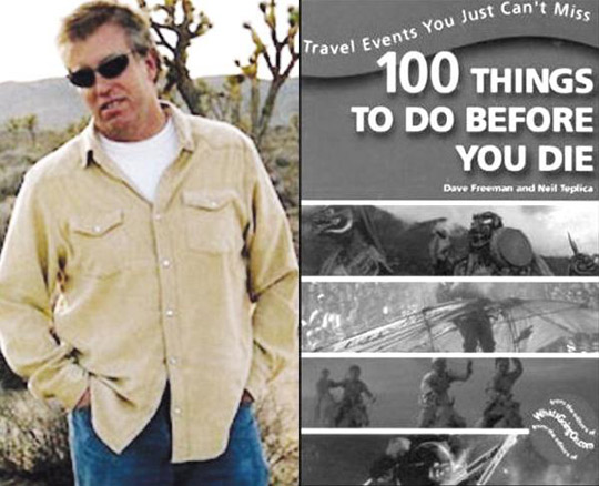 美國(guó)男子誓完成100個(gè)“人生夢(mèng)想”。美國(guó)加利福尼亞州洛杉磯市維尼斯地區(qū)47歲男子戴夫·弗里曼9年前和朋友合寫(xiě)了一本十分暢銷的旅行探險(xiǎn)向?qū)?shū)《100個(gè)生前必做之事》,他在書(shū)中向讀者推薦了世界上100個(gè)最怪異的旅游探險(xiǎn)地點(diǎn)和必做之事,包括到海地進(jìn)行伏都教“朝圣”、到西班牙和公牛一起賽跑、到澳大利亞進(jìn)行一年一度的夜間裸體沖浪競(jìng)賽、到美國(guó)北卡羅萊納州參加喊叫競(jìng)賽等。戴夫更是身體力行,發(fā)誓在生前做完書(shū)中所寫(xiě)的100件事情,然而令人意想不到的是,他只完成了其中50個(gè)“人生夢(mèng)想”,就于家中摔了一跤,不幸離開(kāi)人世。