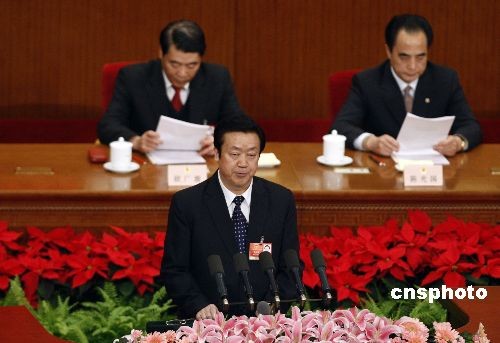 3月10日,第十一屆全國人民代表大會第二次會議在北京人民大會堂舉行第三次全體會議,最高人民法院院長王勝俊在向大會作工作報告時指出,要嚴懲重大安全責任事故、制售偽劣食品藥品。中新社發(fā) 盛佳鵬 攝