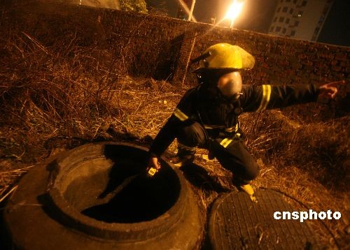 圖為堵漏成功后消防官兵利用消防測爆儀對泄漏點進(jìn)行檢測。中新社發(fā) 袁帆 攝