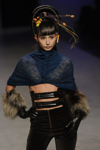 3月16日,模特在烏克蘭首都基輔舉行的時(shí)裝周上展示造型奇麗的發(fā)型設(shè)計(jì)。