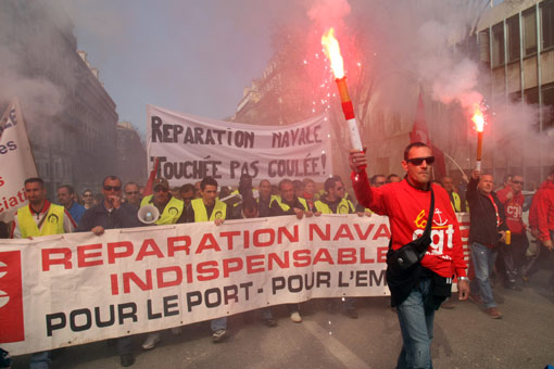3月19日法國各大工會在全國各地聯(lián)合組織罷工和示威游行等活動,抗議薩科齊政府在應(yīng)對當(dāng)前經(jīng)濟(jì)危機(jī)過程中忽視勞動者權(quán)益和社會福利。圖為法國城市馬賽舉行罷工游行。