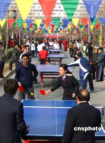 3月20日,北京市東城區(qū)第三屆“和諧杯”乒乓球賽在地壇公園開幕,來自社會各行業(yè)的選手參加了此次賽事。中新社發(fā) 富田 攝