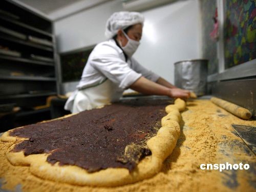 圖為面點廚師正在加緊制作。中新社發(fā) 富田 攝