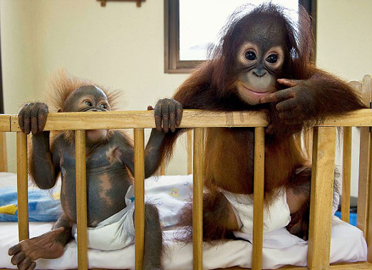 據(jù)英國媒體近日報(bào)道,在馬來群島的中部有一家專為小猩猩服務(wù)的醫(yī)院,照看那些瀕臨滅絕的稀有物種猩猩。它們大多數(shù)都是被母猩猩丟棄的幼仔。