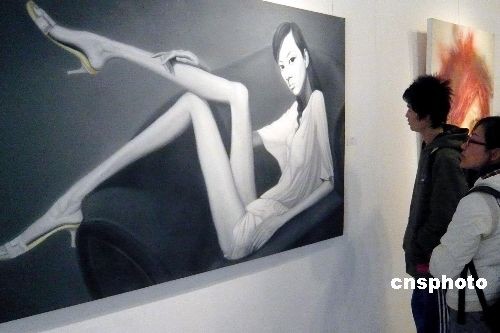 3月22日,位于北京朝陽(yáng)區(qū)的798藝術(shù)區(qū)內(nèi)中外游客絡(luò)繹不絕。作為中國(guó)當(dāng)代藝術(shù)文化展示園區(qū),這里匯集了中國(guó)當(dāng)代藝術(shù)家不同門(mén)類(lèi)、派別、風(fēng)格的多元化藝術(shù)作品,呈現(xiàn)出百家爭(zhēng)鳴的繁榮景象。圖為北京798藝術(shù)區(qū)繪畫(huà)作品吸引游客。中新社發(fā) 錢(qián)興強(qiáng) 攝