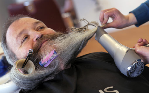 德男子將胡子編成自行車迎世界胡子節(jié)(2)