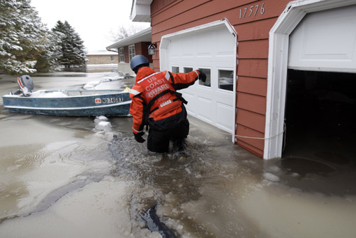 組圖:美國北達科他州春雪融化引發(fā)洪災(3)