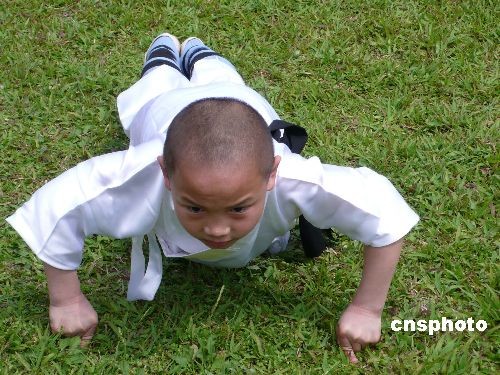 圖:大陸"大力神童"臺北表演一指禪俯臥撐