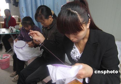 5.12地震一周年前夕,四川北川縣民眾的生活正在漸漸擺脫地震陰影,迎接新的生活。5月6日,四川北川羌族自治縣曲山鎮(zhèn)楊華麗在永興板房里教人做羌繡服飾。北川羌族婦女就業(yè)幫扶中心將羌繡幫扶計(jì)劃,通過發(fā)動(dòng)地震災(zāi)區(qū)婦女從事羌繡手工勞動(dòng),幫助災(zāi)區(qū)婦女就業(yè)和生產(chǎn)自救,保護(hù)當(dāng)?shù)厍祭C獨(dú)特的文化遺產(chǎn),推廣傳統(tǒng)的羌族民族藝術(shù),讓更多人了解古老的羌族文化。中新社發(fā) 郭國權(quán) 攝