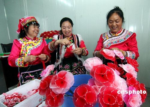 5月7日,北川縣曲山鎮(zhèn)永興板房群眾手工制作“康乃馨”作為母親節(jié)禮物,送給由中國科學(xué)院心理研究所心理援助北川站和香港大學(xué)社工系工作人員聯(lián)系的6000名香港學(xué)生的母親,以感謝香港人民對四川地震災(zāi)區(qū)百姓的關(guān)心和支持。 據(jù)悉,這些“康乃馨”將送到6000名香港學(xué)生手中,并做為特殊的母親節(jié)禮物送給他們自己的母親。而地震災(zāi)區(qū)群眾也會在制作“康乃馨”傳遞愛心的過程中體會到快樂,更加自信地生活。中新社發(fā) 郭國權(quán) 攝