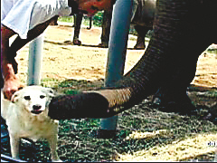 工作人員從來不知道它們的感情到底有多深,直到去年的一天,流浪狗貝拉的脊椎受了傷,它既無法走路,也無法搖動(dòng)尾巴,而大象塔拉一直不離不棄地陪伴在貝拉的身邊。工作人員見狀后,立即將貝拉抱進(jìn)了大象庇護(hù)所辦公室樓上的“臨時(shí)病房”進(jìn)行治療,結(jié)果他們發(fā)現(xiàn)在長達(dá)三個(gè)小時(shí)里,大象塔拉都寸步不離地守候在辦公室外面,并不時(shí)發(fā)出叫聲,呼喚自己的“狗友”。