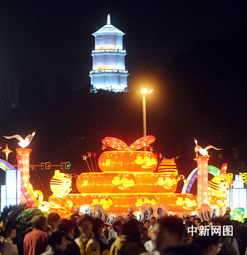 2月25日晚,2010福州南后街元宵燈會(huì)上燈如海人如潮。“科學(xué)發(fā)展開新篇”、“文明祥和奏和諧”、“生態(tài)優(yōu)美話宜居”、“閩臺五緣促交流”等6個(gè)大型主題燈組及1000多盞傳統(tǒng)花燈,集中展示了“揚(yáng)帆海西,福滿榕城”的燈會(huì)內(nèi)涵。壯觀的燈組、精美的花燈,吸引數(shù)以萬計(jì)的前來市民觀燈賞燈,流連忘返。中新網(wǎng)發(fā) 劉可耕 攝