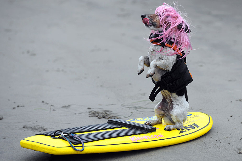 6月20日,在美國加利福尼亞州帝國沙灘舉行了一場小狗沖浪比賽,小狗們表現(xiàn)得十分認真。