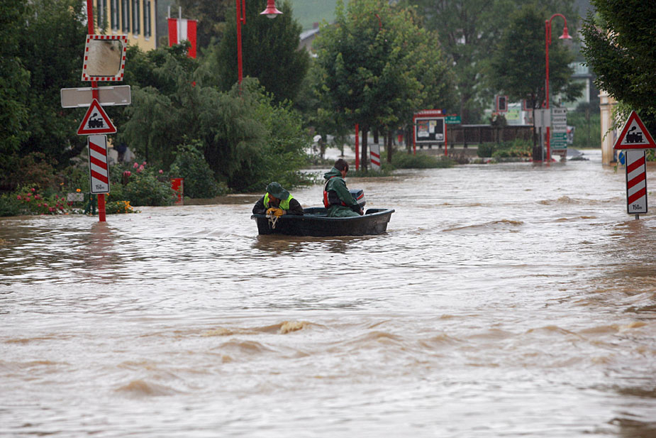 6月24日,奧地利部分地區(qū)由于連日降雨發(fā)生洪災。當?shù)叵廊藛T緊急出動,用各種工具將災民運往安全地帶。
