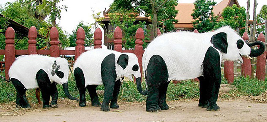 據(jù)英國媒體報(bào)道,近日,泰國因一只剛出生的熊貓陷入熱潮,泰國還準(zhǔn)備向公眾征集熊貓幼崽的名字。幾只大象也“妝扮”成熊貓的模樣,借此吸引人們的關(guān)注。