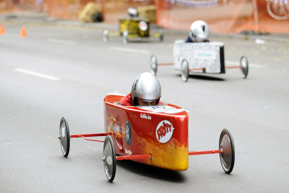 6月28日,德國(guó)柏林的德比郡舉行了第50屆“肥皂盒”競(jìng)速賽車,該賽車沒(méi)有動(dòng)力裝置,參賽者親手打造的“賽車”更使比賽妙趣橫生。