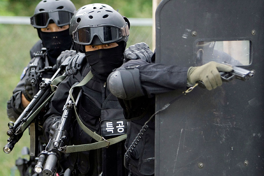 7月2日,韓國(guó)特警在韓國(guó)首都首爾市舉行了反恐演習(xí)。韓國(guó)特警先后表演了一系列高難度動(dòng)作,令人目不暇接。