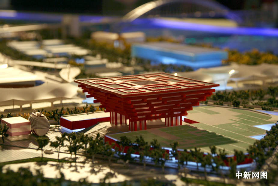 圖為中國(guó)館及周邊場(chǎng)館模型。