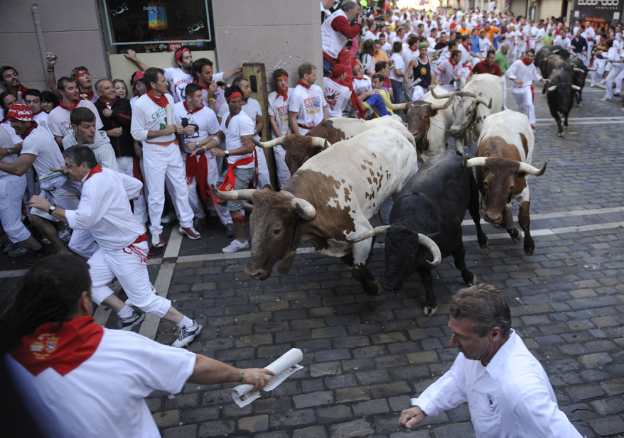 西班牙一年一度的潘普洛納奔牛節(jié)上驚險(xiǎn)場(chǎng)面層出不窮。奔牛節(jié)是潘普洛納的傳統(tǒng)節(jié)日,其歷史可以追溯到1591年,每年都吸引數(shù)十萬(wàn)人參加。