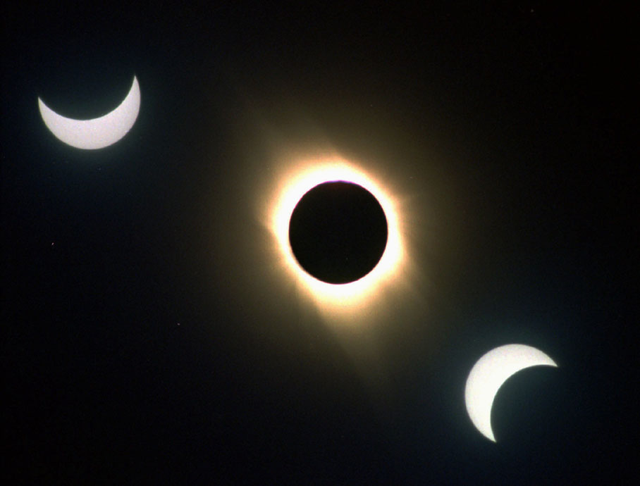 圖為1998年2月在哥倫比亞,攝影師經(jīng)過多重曝光拍攝的日全食發(fā)生過程的場景。